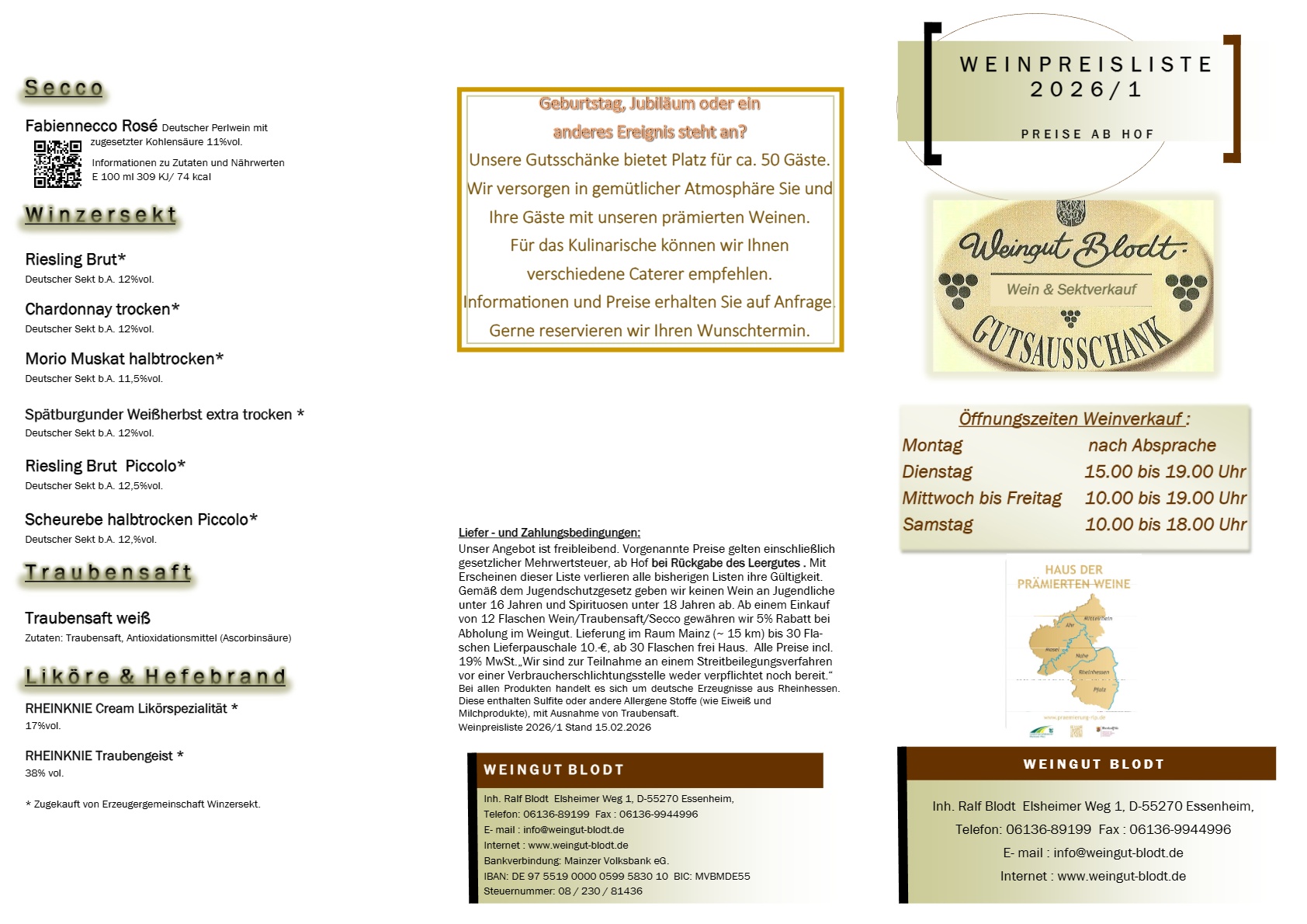 Unser Weinverkauf ist an folgenden Tagen geöffnet: